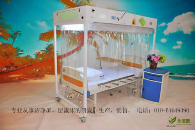 層流床的用途:通過高效率的光觸媒空氣過濾消毒可大量地減少空氣中的塵埃粒子及微生物,對化療、放療、燒傷、哮喘、移植等各種免疫力功能下降的病人可有效的降低感染率,減輕病人的痛苦。