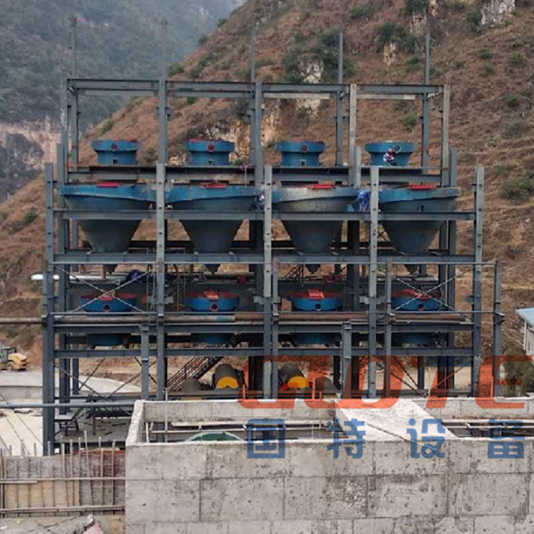 一般工藝流程為:“原礦—粗碎—中碎—預先篩分—磨礦—脫泥—粗粒分級—脫泥—板式磁選機粗選—立環高梯度磁選機精選—細粒分級—脫水”的工藝流程進行濕法石英精砂的生產。