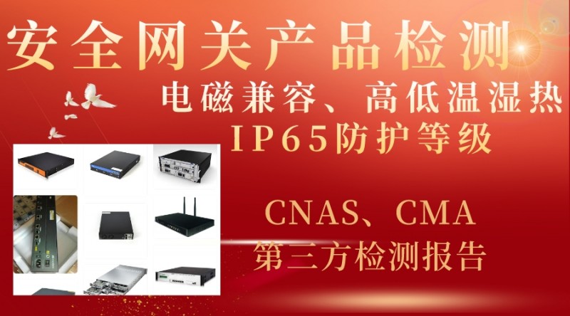 北京地區(qū)具備CNAS和CMA資質(zhì)的第三方檢測(cè)機(jī)構(gòu),出具全國(guó)認(rèn)可的第三方檢測(cè)報(bào)告。提供安全網(wǎng)關(guān)產(chǎn)品產(chǎn)品檢測(cè)服務(wù),例如安全網(wǎng)關(guān)的電磁兼容試驗(yàn)、高溫低溫試驗(yàn)、防雷試驗(yàn)IP65防護(hù)等級(jí)認(rèn)證、MTBF指標(biāo)。