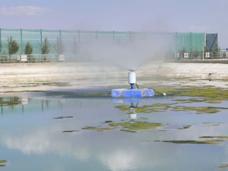 1.立式環(huán)保風(fēng)送式高射程噴霧機(jī):架設(shè)于蒸發(fā)塘岸邊,進(jìn)行污水霧化蒸發(fā)。