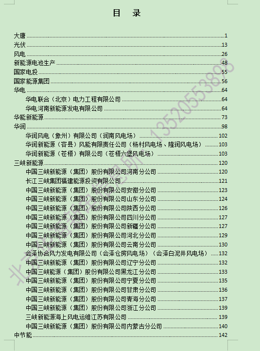 《全國風電光伏新能源企業名錄》由北京華海新電信息咨詢有限公司在2002年 開始發行,到今年已經走過了19個年頭,期間得到廣大新老客戶的支持幫助,在此一并致謝!《全全國風電光伏新能源企業名錄》一直在更新,每年都會編輯進去新投產的機組,停產的機組也會標注出來。內容包含:電廠名稱、郵編、地址、各科室(生技科、物資部、運行部、設備部)負責人姓名和電話、裝機容量、投產時間、三大主機生產商等詳細信息。