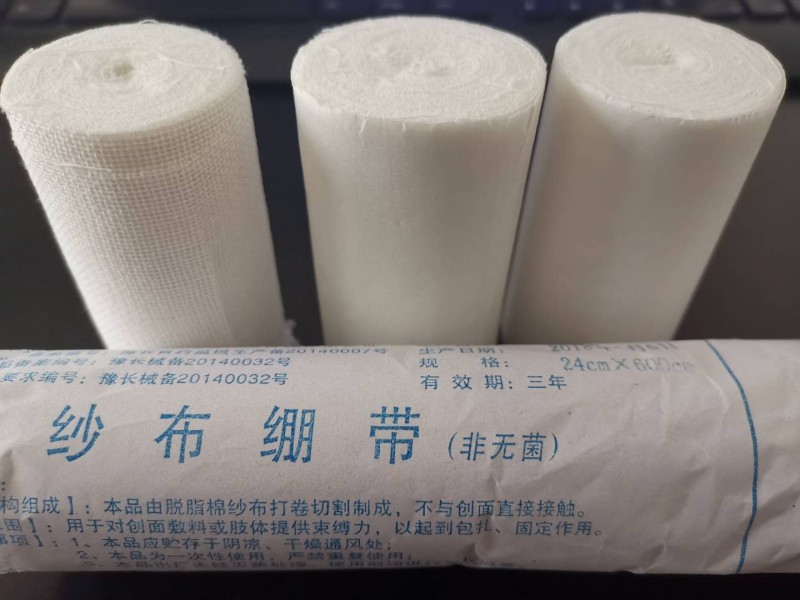 品名:一次性使用醫用脫脂紗布繃帶(簡稱醫用繃帶)使用說明 名稱:一次性使用醫用脫脂紗布繃帶(簡稱醫用繃帶) 描述:本品由純棉絮片制成。 型號:10*6、8*6、6*6、4.5*6 規格:長(300-1000