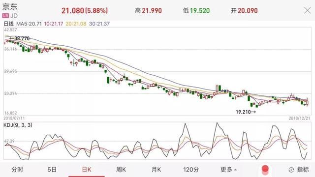 同時,京東股價大跌。從當地時間8月31日的31.30美元到12月21日的21.08美元,京東股價跌幅高達近30%,目前其市值為305億美元,三個半月市值蒸發了150多億美元。