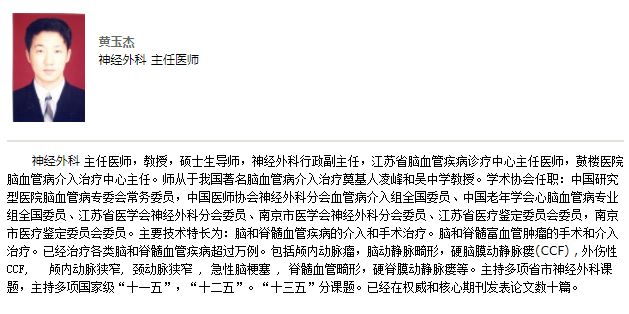 看來,傳聞中的某三甲醫院神經外科副主任即為鼓樓醫院神經外科黃玉杰教授。