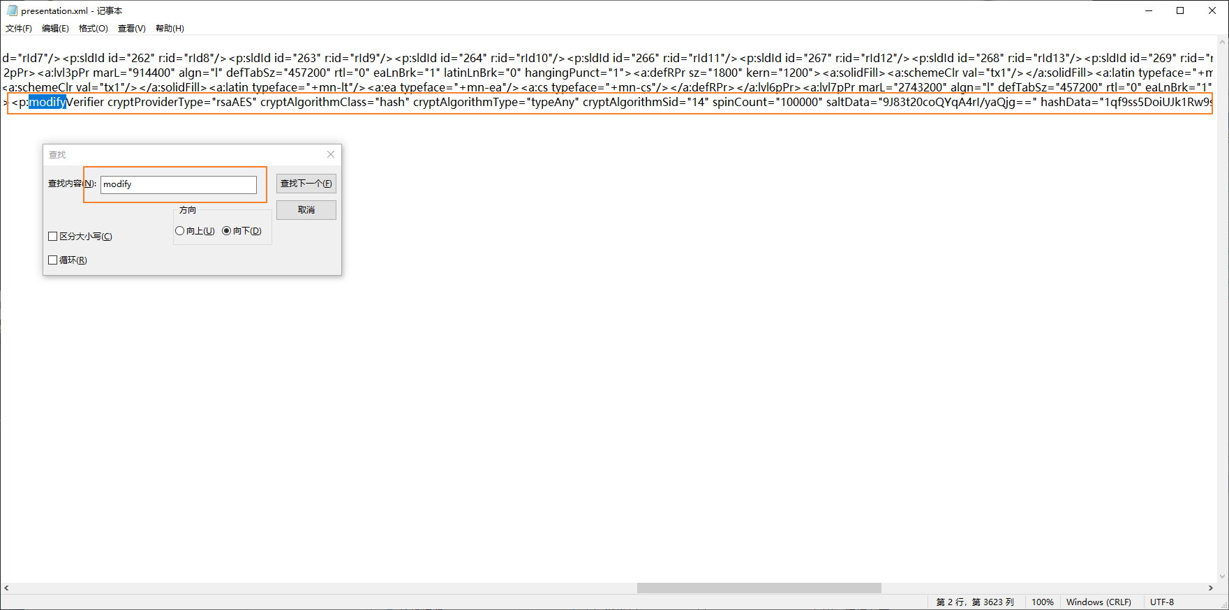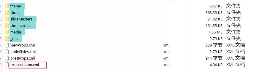 ②打開并解壓到一個(gè)文件夾,用記事本打開presentation.xml文件