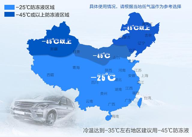防凍液一般選擇比所在地區(qū)最低氣溫低10-15度最好。在冬季要選擇低冰點的防凍液,冰點越低,防凍液的抗凍性能越強。在北京一般選擇冰點為-30℃的防凍液。車主謹記,防凍液不要兌水使用,以防在寒冷的冬季冷凍成冰,輕則造成汽車無法正常啟動,重則直接損害發(fā)動機。