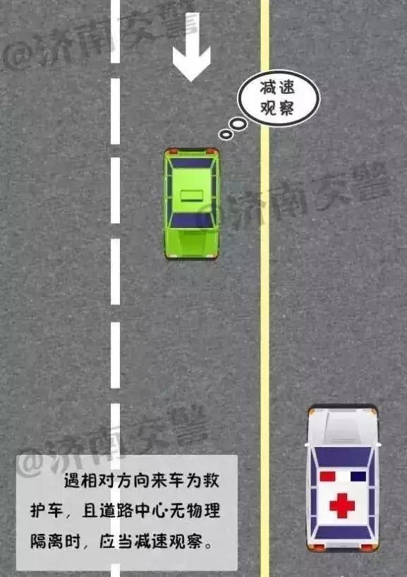 1、遇相對方向來車為急救車,且道路中心無物理隔離時,應當減速觀察。如急救車要左轉彎或借自己所在車道通行,應停車讓急救車先行。