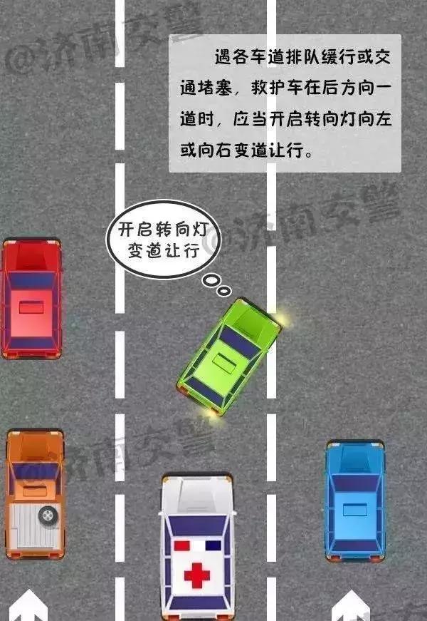 2、同一路段,駕車在急救車前方同向行駛時,如各車道車輛可以正常前行,不得左右變道,應減速讓急救車快速通過;如遇各車道排隊緩行或交通擁堵,急救車在后方同一車道時,應當開啟轉向燈向左或向右變道讓行。