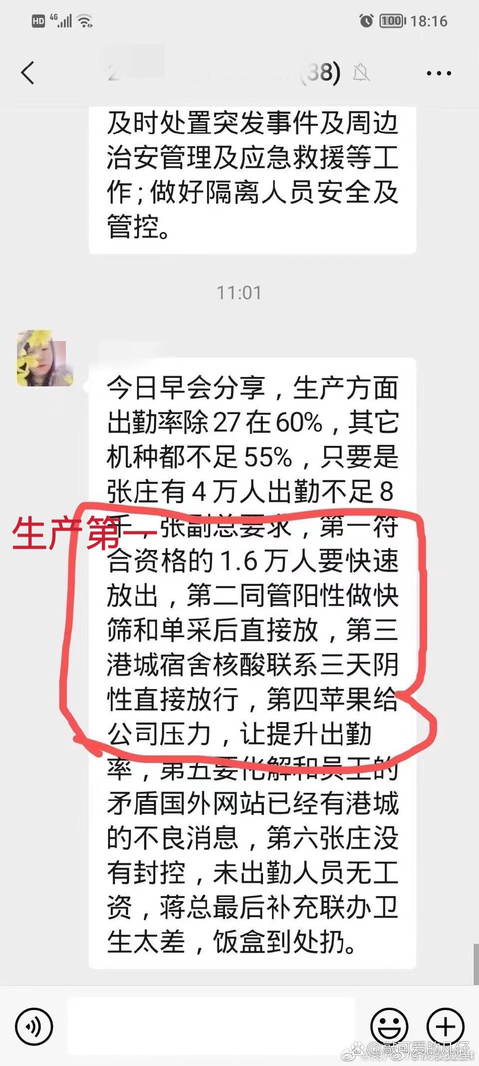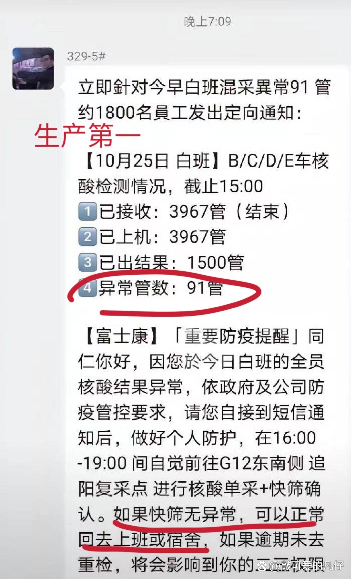 為了激勵(lì)員工上班,保證產(chǎn)量不大幅下降,對(duì)于全勤人員,富士康實(shí)行激勵(lì)政策,每人每天會(huì)獎(jiǎng)勵(lì)50元,疫情結(jié)束后,統(tǒng)一發(fā)放。那對(duì)于未出勤人員呢,不上班沒(méi)有防疫物資,也沒(méi)有飯可以領(lǐng),這些問(wèn)題都需要自行解決。核酸需要每日一做,就算是不上班,也要冒著被感染的風(fēng)險(xiǎn),人擠人和別人一起去廠區(qū)去做。所以對(duì)大多數(shù)人來(lái)說(shuō),他們想要不餓著亦或者吃到免費(fèi)的餐食,也想避免做不上核酸,上班是最佳出路,包括混陽(yáng)密接人員,至此風(fēng)險(xiǎn)性永遠(yuǎn)也不會(huì)降低。