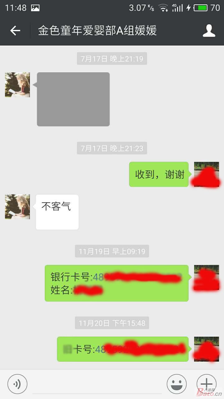 滿月照就拍了三個照型,效果一般,感覺孩子很小也沒在意。接下來,百天照選了6件衣服,拍的時候把寶寶折騰壞了,受大罪了。當天拍完后,讓付剩余款,我老婆說看完效果后考慮是否再付。結(jié)果金色童年不答應,說只有全付款后,才向下走流程。不想與他們爭吵就說服老婆付了剩余款項。等了一星期11月6號來選照片的時候,看到拍了120多張,感覺拍的效果很一般,并且只能選30張底片。如果多要一張放到光盤里要加錢25元一張(真心黑,就是拷過來),服務員態(tài)度也不好。與老婆一商量一下剩余不拍了,要他們退款。他們也很痛快地答應退款,但要按原價扣掉這次拍的百天照1699元(真太媽的卑鄙),也忍了,退款時,讓我留了支付寶,說15天內(nèi)退,退時會提前給打電話。