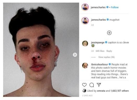 前段時間,“家暴妝”在網(wǎng)絡(luò)上走紅。顧名思義,這種妝容就是為了模仿女人被家暴后的樣子。最開始,是從國外的“入獄妝”演變而來的。