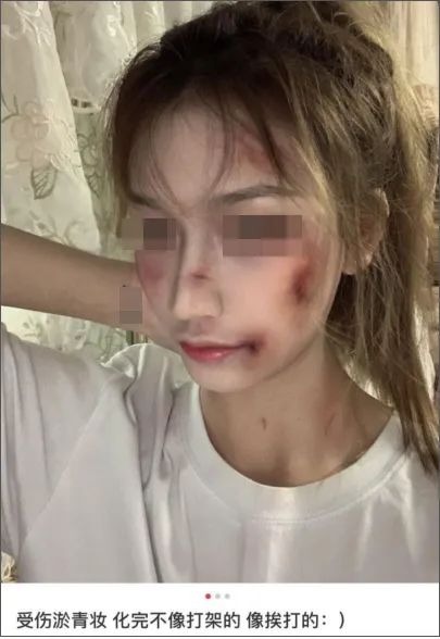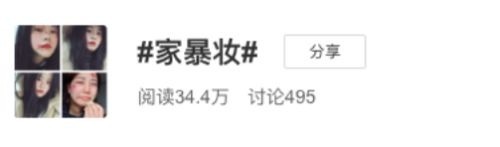 微博上還有一個關(guān)于“家暴妝”的話題,每天都有人在上面更新,相互攀比,看誰的妝容更像被家暴。