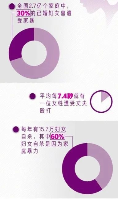更重要的是,她們并不是一小波人,她們是一群人,數(shù)量多到你可能無法想象:據(jù)全國婦聯(lián)統(tǒng)計,在全國2.7億個家庭中,有30%的已婚婦女曾遭受家暴,平均每7.4秒就有一位女性遭受丈夫毆打。