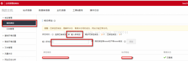 二、將解析的二級域名綁定主機。