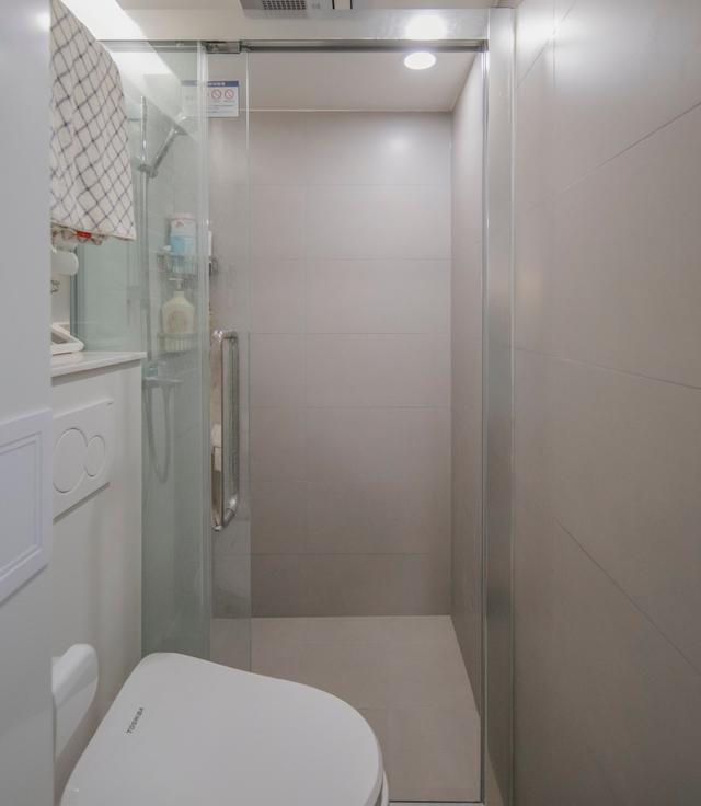原衛(wèi)生間十分擁擠,根本無法滿足基本的布局,所以為了改善使用舒適性,內部就取消了洗手臺功能。這樣不僅實現(xiàn)了獨立淋浴間設計,日常使用也寬敞多了。