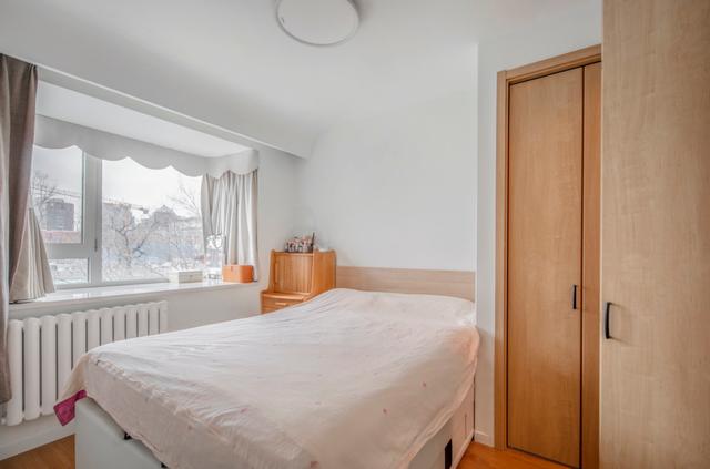 主臥選擇了一張1.5m寬的箱體床,兩人睡眠足夠,且可以用來收納。