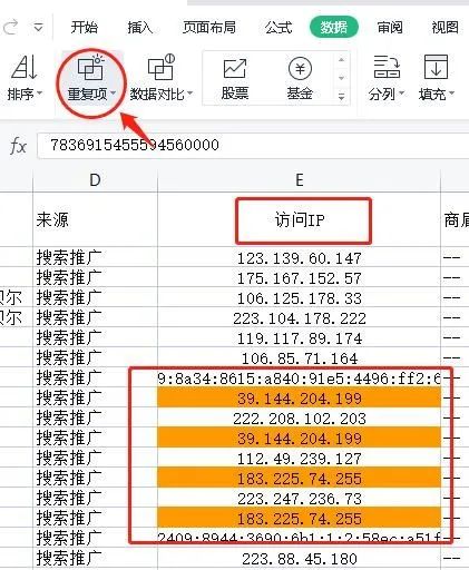 然后,用excel表,高亮顏色顯示重復ip,然后再按顏色排序,這樣重復的ip就找出來了!