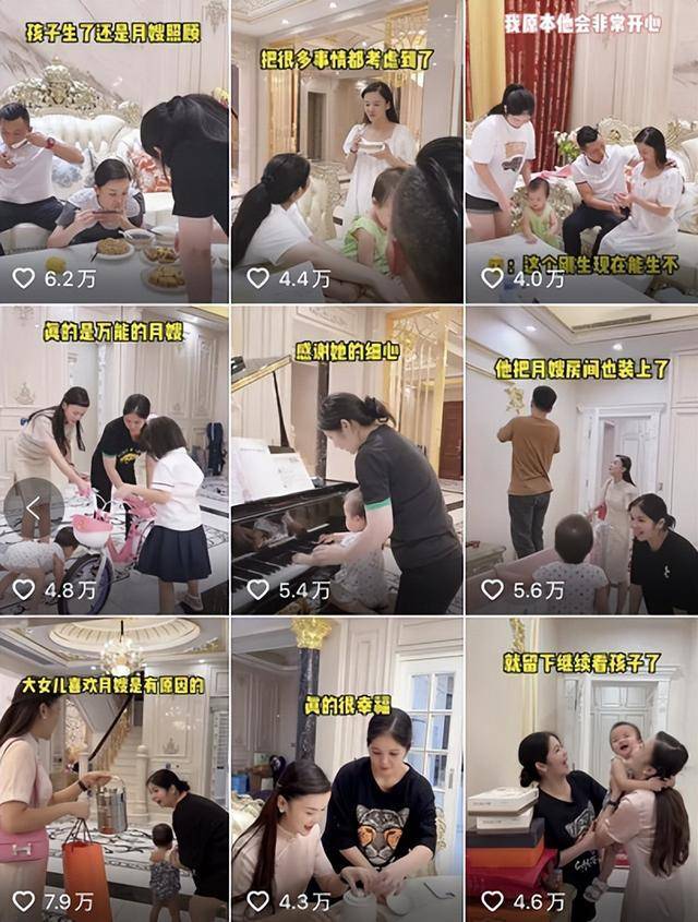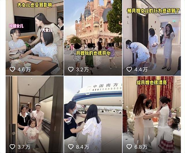 趙女士在社交平臺發布的視頻多為與月嫂相關的日常,包括月嫂照顧孩子、給月嫂過生日、和月嫂一起做公益、帶月嫂出去玩、給月嫂送禮物等,獲得大量網友點贊。
