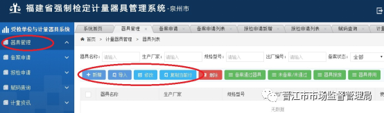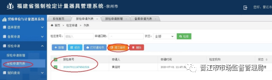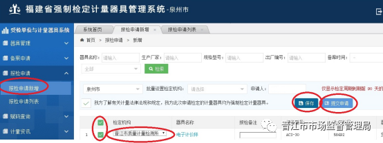 第二步,登錄“福建省強制檢定計量器具管理系統”網上報檢
