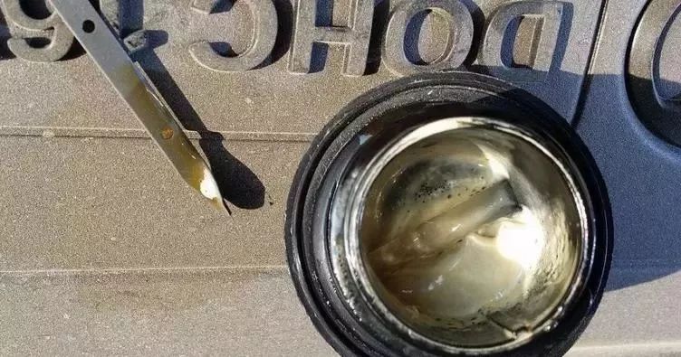 第三種是防凍液進(jìn)入汽缸內(nèi)參與燃燒,比如缸體裂縫,缸墊燒蝕或腐蝕變形等,這時(shí)拔出油尺看機(jī)油是否出現(xiàn)乳化現(xiàn)象(機(jī)油乳化就是機(jī)油變成了乳狀液體,呈現(xiàn)乳白色或乳黃色,看起來(lái)像是用水?dāng)嚢璧拿婧矣信菖荩驗(yàn)楦左w上有油道和水道,一旦缸墊損壞,水道便無(wú)法密封,就流到了油道里。