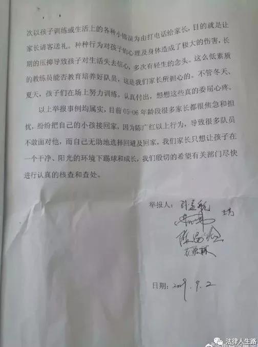 9月8日,五位球員家長(zhǎng)實(shí)名舉報(bào)陳廣紅長(zhǎng)期猥褻隊(duì)內(nèi)十幾歲小球員。