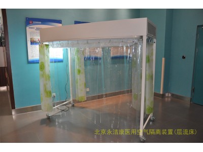 醫(yī)用空氣隔離裝置概述:醫(yī)用空氣隔離裝置俗稱層流床,該裝置運(yùn)用層流潔凈送風(fēng)形式,使裝置內(nèi)潔凈度達(dá)到ISO5(百級(jí))等級(jí)的潔凈無(wú)菌環(huán)境,同時(shí)使裝置區(qū)域內(nèi)維持正壓,以阻止外部不潔空氣進(jìn)入,起到無(wú)菌隔離的作用。通過(guò)在普通病房?jī)?nèi)配置本隔離裝置,形成局部潔凈無(wú)菌環(huán)境,與使用無(wú)菌凈化病房相當(dāng),有效降低患者發(fā)生感染的幾率。本產(chǎn)品裝配快捷、移動(dòng)方便,可在各病房之間按需配置。特別適用于血液病人、燒傷病人、呼吸道疾病人和化放療等免疫力低下的病人使用。