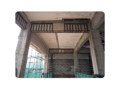 1.采用粘鋼加固法對混凝土梁補強:主要針對梁彎矩不足進行補強,可根據受彎承載力的大小,在梁的底部粘貼通常鋼板(厚度根據力的大小來定),用U型箍和壓條固定。