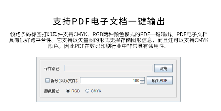 軟件支持一鍵輸出CMYK/RGB兩種顏色模式、以及具有專色功能的PDF文檔。PDF電子文檔具有良好的跨平臺性。它支持以矢量圖的形式無損存儲圖形信息,而且還可以支持CMYK顏色,因此PDF在數碼印刷行業中非常具有通用性。