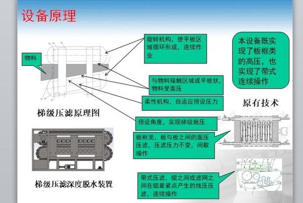 國內首創的帶式壓濾污泥深度脫水新技術,本技術特別適用于污泥脫水提標改造工程,充分利用原有一次污泥脫水系統,將80%左右含水率的一次脫水污泥深度脫水到含水率60%左右。