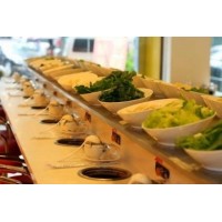 客人只需要坐在自己的位子上,一鍋湯底,菜品自動傳到我們的身邊,只需動動手,就可以拿到自己想要的菜品,來回傳送的精美菜品,更是讓人目不暇接,擁有傳送帶的火鍋店面,更加美觀。