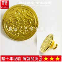 主要工藝有:蝕刻(咬板)、壓沖、注漆(填油)、絲印、滴膠、仿琺瑯、鋅合金壓鑄、柯式印刷等。材料可選用銅、鐵、鋅合金、馬口鐵、亞克力、鋁、鉛錫合金、PVC等材料。