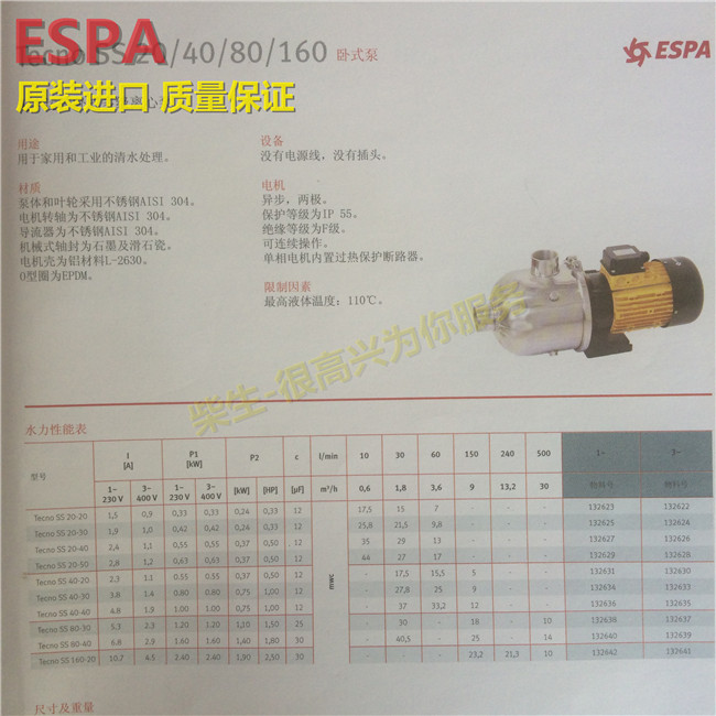 泵體,葉輪為不銹鋼AISI 304,電機轉(zhuǎn)軸為不銹鋼AISI420 導流室為玻璃纖維塑料,橡膠為EPDM,機械式軸封為石墨及氧化鋁,一體化臥式多級離心泵,適用于家用供水系統(tǒng),園藝灌溉系統(tǒng),可用于簡單食品工業(yè),也可用于工業(yè)領(lǐng)域中的特殊應用