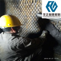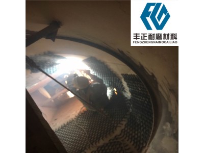 在水泥、電力、礦山等行業(yè)中,諸如立磨選粉機出口、球磨機出入口管、選粉分離器等大型機械設(shè)備內(nèi)部長期受到物料或高濃度含塵氣體的沖刷。物料和高濃度含塵氣體在沖刷的過程中會和襯體發(fā)生強烈地碰撞和摩擦,襯體易受到磨損。長期的磨損會使鋼板出現(xiàn)變形或直接磨穿,嚴重影響了設(shè)備的正常運行,經(jīng)常停機維修會影響整個生產(chǎn)線的運轉(zhuǎn)。目前現(xiàn)有技術(shù)中常采用涂覆耐磨膠黏劑的形式來進行磨損修補。由于大多數(shù)膠黏劑造價成本高,且耐熱性能差,很難推廣應用到大型機械設(shè)備的大面積磨損修補。