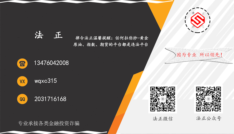 想投資賺錢是對的但是投資前要先了解自己做的是什么,不然什么都不懂,盲目的進入是很吃虧的,知己知彼才能百戰不殆,就是有些平臺利用了想賺錢的心理給投資者設下圈套,引誘投資者一步步進入圈套,許多投資被.騙虧.損的到后來全部虧完了還在相信老師會帶他賺回來,這是不可能的,自己換位思考下就知道了,如果你是已經虧.損或者是還在操作的,如有疑問可以來咨詢律令法正,我們有最專業的律師團隊來幫助你解開疑惑和追回你的虧.損。