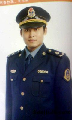 、工作服裝面料及式樣 (一)制服:藏藍(lán)色毛滌混仿面料西式服裝,分為秋冬季厚面料和春夏季薄面料,單排扣西式套裝。 (二)半袖襯衫:白色滌棉面料,樣式為夾克式。 (三)長(zhǎng)袖襯衫:白色滌棉面料。 (四)冬裝大衣:藏藍(lán)色多功能透濕涂層面料(顏色同制服),男女同款。 (五)領(lǐng)帶:顏色與制服相同,真絲或滌絲面料,領(lǐng)帶印有勞動(dòng)保障監(jiān)標(biāo)志圖案