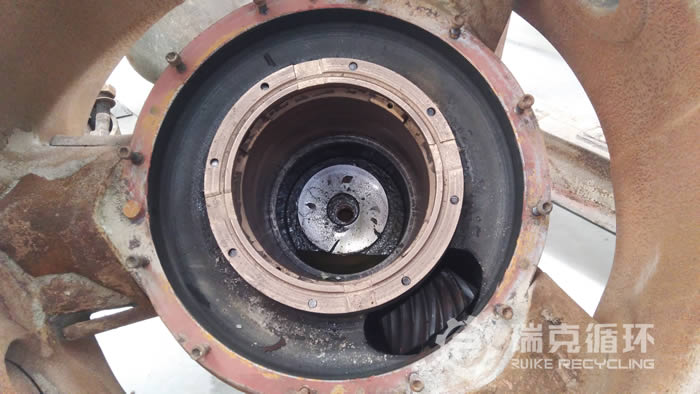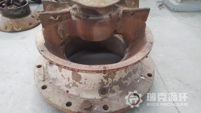 該臺GP100圓錐破碎機在鵝卵石破碎中出現了飛車現象,破碎能力下降了很多,客戶將設備拆除送到我公司維修。