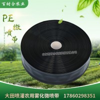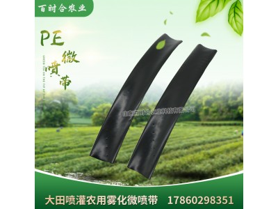 百時合微噴帶是繼滴灌管、滴灌帶、PE管之后,新型的微型噴灌設備,微噴帶 是將灌溉水用壓力經過輸水主管和微噴管帶送到田間,通過微噴帶上的噴水孔,在重力和空氣阻力的作用下,形成細雨般的噴灑效果。大田噴灌霧化PE微噴帶山東百時合