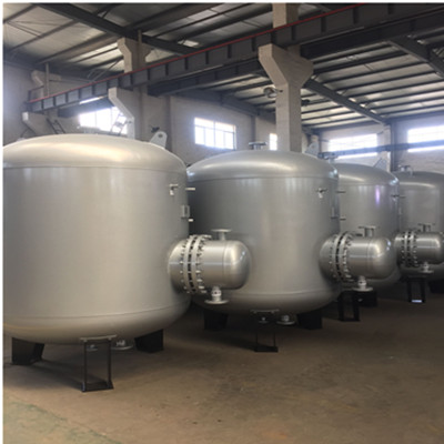 半容積式熱交換器,是為高檔賓館、酒店、療養院、醫院進行熱水供應的暖通換熱設備。通過熱媒的熱量釋放,將自來水加熱至60攝氏度,進入熱水系統,進入房間或洗浴頭,進行熱水使用。