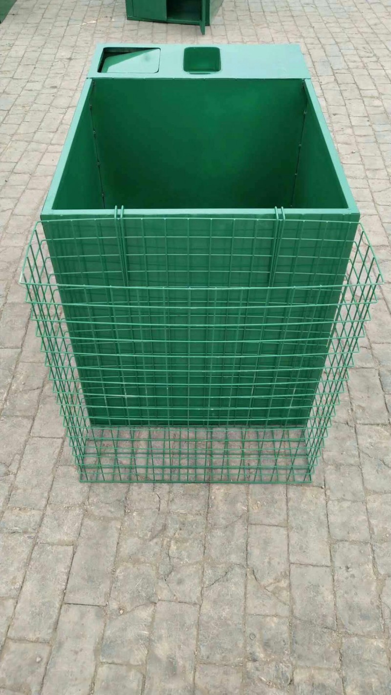 金屬收納筐懸掛于回收箱側(cè)面,用于包裝緩沖物的回收。