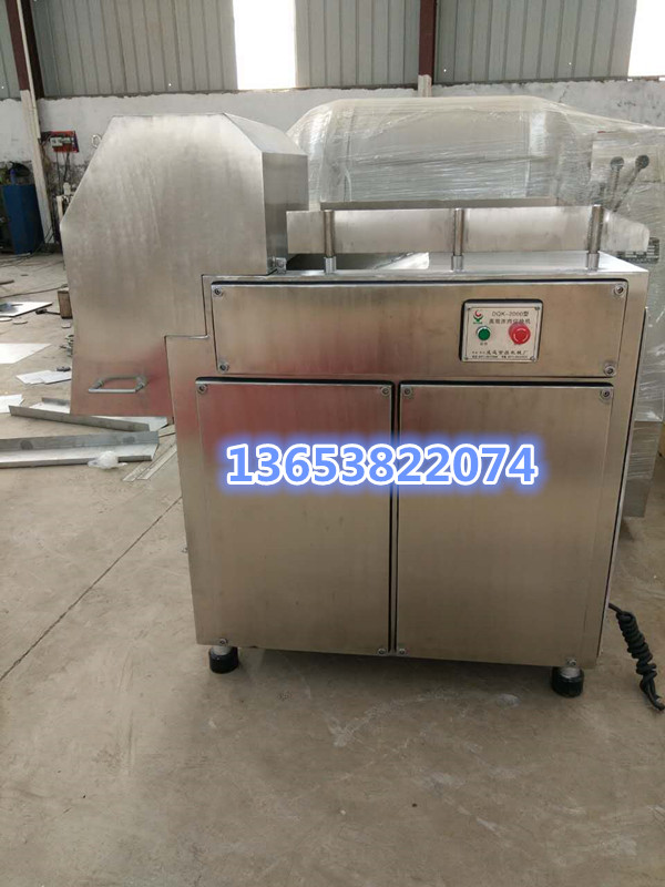 高效凍肉切塊機又名切塊機、切肉機、切肉塊機、凍肉分割機、凍肉切割機等, 生產的主打肉類加工設備、該機可將原料凍肉塊分割切塊切片等是凍肉前期加工設備。該機可將-18℃的凍肉切割成小塊,便于下道工序絞肉機加工。切刀用優質合金鋼材料加工并經防腐處理;比同行其他廠家所生產同款設備使用壽命長更長久。