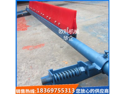 彈簧聚氨酯清掃器是采用進口高分子刀口板合成的清掃滾筒、安裝架組成。聚氨酯清掃器使用壽命比普通合金刀條清掃器高出4倍。可安裝在頭輪下不回移處或平穩(wěn)工作面處與頭道聚氨酯清掃器配合使用