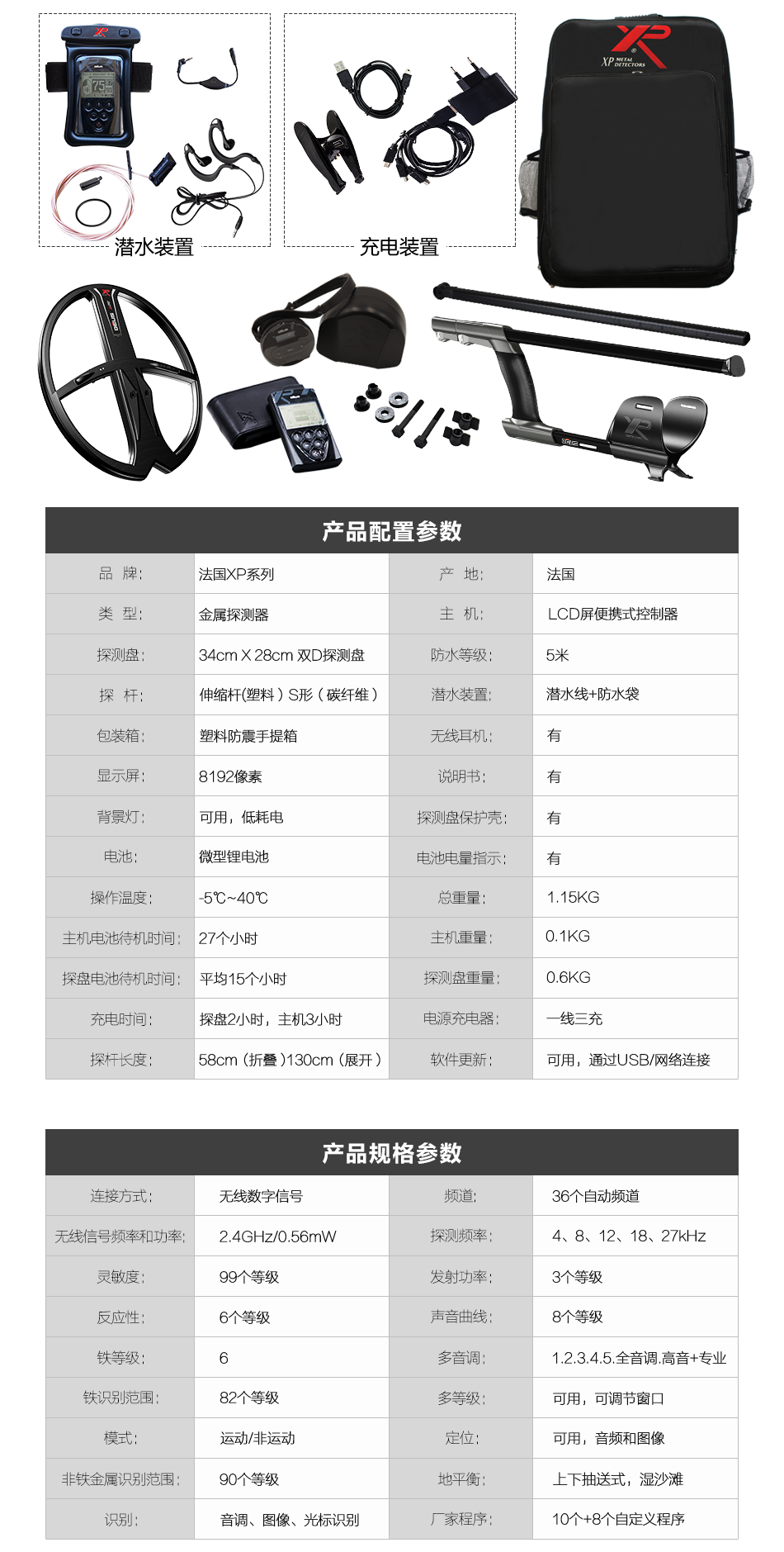 新款XP-X35 13英寸地下金屬探測器是通過全球先進技術打造出來的強大、快速、輕便、簡潔、的可控式數字探測器。機器自帶入門級模式以及專家模式。不管您是初學的探寶愛好者還是經驗十足的探寶愛好者,XP地下金屬探測器會讓您自己做決定是否修改機器上的設定。強大的廠家預置程序可以讓大部分的操作者立即開始探寶,而經驗十足的專業探寶人可以通過控制器界面選擇更先進的參數設置。
