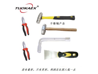 我公司專業(yè)生產(chǎn)防爆防磁工具,鈦合金工具,不銹鋼工具,德標鉻鋼,航天航空,船舶汽車維修,中石油,中石化,燃氣,采氣,制藥等專業(yè)專用防爆工具。功能特點:由于銅的良好導熱性能及幾乎不含碳的特質(zhì),使工具和物體摩擦或撞擊時,短時間內(nèi)產(chǎn)生的熱量被吸收及傳導,另一原因由于銅本身相對較軟,摩擦和撞擊時有很好的退讓性,不易產(chǎn)生微小金屬顆粒,于是我們幾乎看不到火花,因此防爆工具又稱為無火花工具。