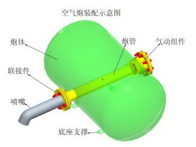 空氣炮是防止和消除各種類型料倉、料斗、水泥預熱器窯道分叉處及礦山溜井、溜坡的物料 起拱、粘倉閉塞等到現(xiàn)象的專用裝置。一般整套的空氣炮組件是由儲氣罐、氣缸、電磁閥以及相關的管路閥門等組成。