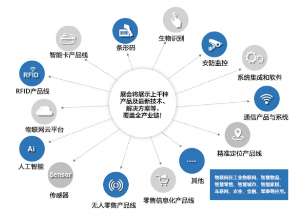 覆蓋完整產業鏈:AIOTE202南京國際物聯網展覽會是物聯網產業鏈完整的展示,涵蓋物聯網運算與平臺層——云計算、邊緣計算、云平臺、大數據與數據安全、人工智能,感知層——MEMS、RFID、智能卡、傳感器、條碼、生物識別、視頻識別,網絡傳輸層——NB-IoT、LoRa、2G/3G/4G/5G、eSIM、ZigBee、Bluetooth、GPRS、WIFI、UWB、Z-wave,以及應用層——實時精準定位、智慧零售、無人售貨、工業4.0、智慧物流、智慧城市、智能家居。