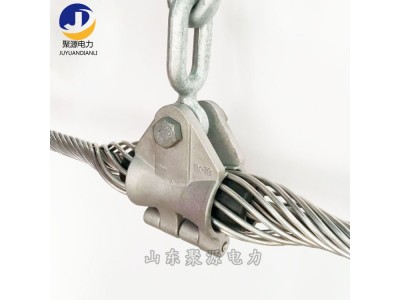 4、以懸垂線夾的中央為中心,將鋁夾板夾嵌在外層預(yù)絞絲的外面,讓其掛耳向上,將U形掛環(huán)固定在鐵塔或水泥桿緊固夾具上,固定好螺母,裝好閉口銷。安裝完畢。
