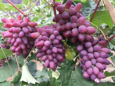 雌性花,無核,抗寒抗病能力強,早產性好。經吉林大藥膨大處理后果穗緊密,果實大小整齊,果實顏色紫紅色,單果重8克。果穗圓筒狀,穗重500-1000克;果皮較韌,耐儲運,果實粉紅色。可溶性固形物含量22% ,有濃厚的茉莉香味,品質好。耐陰雨,成枝好,且產量高、含糖量高,品質好,豐產穩(wěn)產。適宜大部分地區(qū)栽培,在2008年逐漸推廣開。