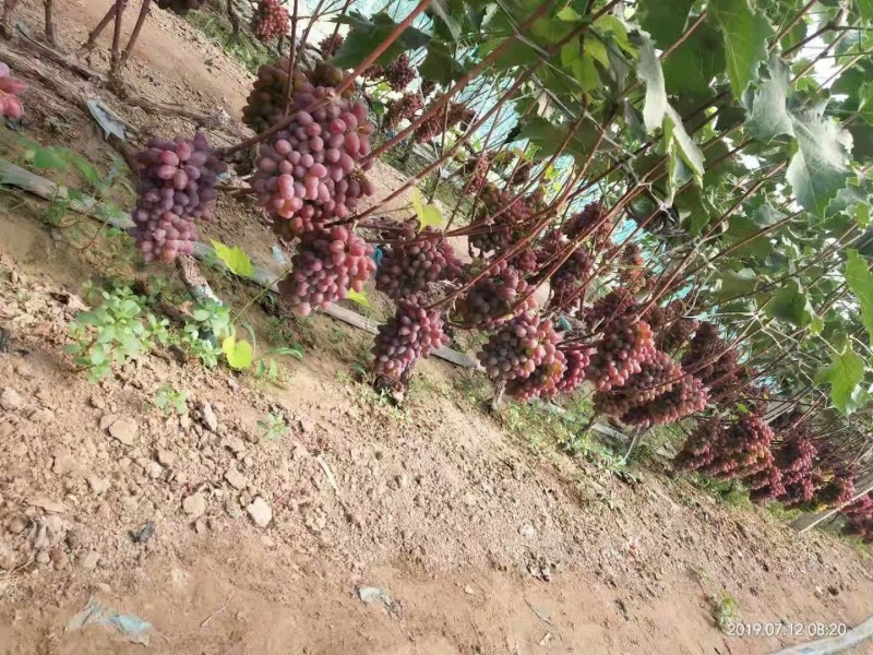雌性花,無核,抗寒抗病能力強,早產性好。經吉林大藥膨大處理后果穗緊密,果實大小整齊,果實顏色紫紅色,單果重8克。果穗圓筒狀,穗重500-1000克;果皮較韌,耐儲運,果實粉紅色。可溶性固形物含量22% ,有濃厚的茉莉香味,品質好。耐陰雨,成枝好,且產量高、含糖量高,品質好,豐產穩產。適宜大部分地區栽培,在2008年逐漸推廣開。