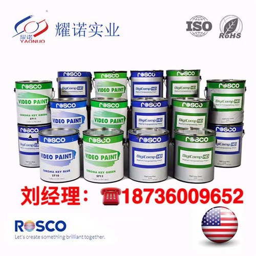 Rosco影視漆,另一個叫法是藍箱漆/綠箱漆,采用色鍵顏色特別配方,以高亮度和準確的色飽和度為鍵控效果,應用于影視行業。這種高固丙烯酸漆,(本品屬于乳膠型,表面不反光)可用于著色和未著色的帆布上,木制品、墻板、壁紙、石膏、各種塑料、金屬、磚和混凝土上,并可以快速冷卻,用于制作木質藍箱/綠箱和玻璃鋼藍箱/綠箱的漆叫做藍箱漆/綠箱漆。