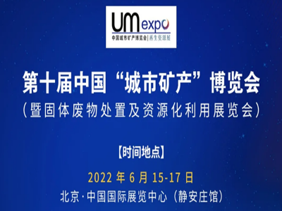由中華全國(guó)供銷合作總社、生態(tài)環(huán)境部等相關(guān)部委聯(lián)合支持,中國(guó)再生資源回收利用協(xié)會(huì)、中國(guó)環(huán)境保護(hù)產(chǎn)業(yè)協(xié)會(huì)等單位聯(lián)合主辦的UM EXPO 第十屆中國(guó)“城市礦產(chǎn)”博覽會(huì)(暨固體廢物處置及資源化利用展覽會(huì))(簡(jiǎn)稱“礦博會(huì)”)、第二十屆中國(guó)國(guó)際環(huán)保展覽會(huì)(簡(jiǎn)稱“CIEPEC”)將于2022年6月15-17日在北京中國(guó)國(guó)際展覽中心(靜安莊)同期舉辦。